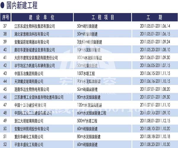 宏順建設工程有限公司是國家批準成立的專業高空作業企業:承攬過(國內.國外)煙囪新建、煙囪防腐、磚煙囪新建、煙囪改造、煙囪維修、煙囪脫硫防腐、煙囪拆除加高、煙囪滑膜等高空作業工程。具有“不搭腳手架 、 不需要停產”施工特點。